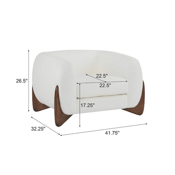 White Boucle Fabric Stylish Arm Chair Club Chair with Walnut Solid Birch Wood Legs