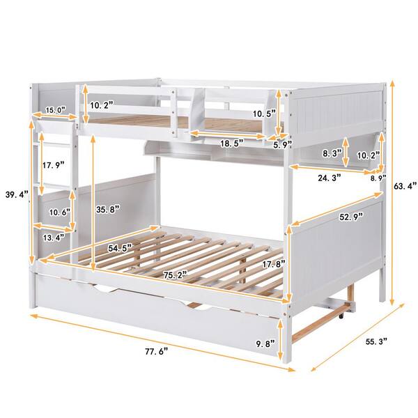 White Full over Full Wood Separable Bunk Bed with Twin Size Trundle and Bookshelf