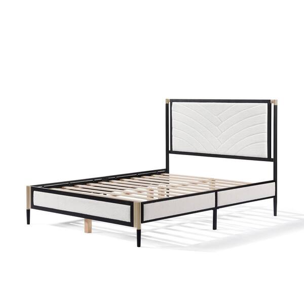 White Metal Frame Queen Size Platform Bed with Boucle fabric Headboard