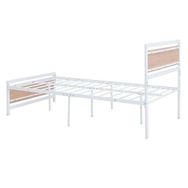 White Metal Frame Twin Size Platform Bed with Wood Headboard and Footboard, Extra Slat Support