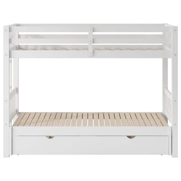 White Twin Over Twin/Double Twin Bunk Bed with Twin Trundle