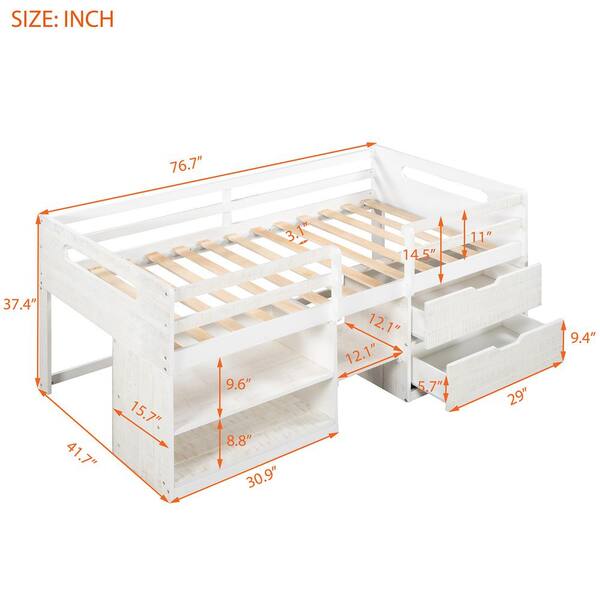 White Twin Size Loft Bed with 2-Shelves and 2-Drawers