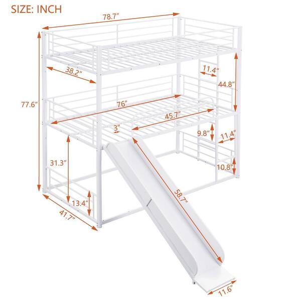 White Twin Size Metal Bunk Bed with Ladders and Slide, Divided into Platform Bed and Loft Bed
