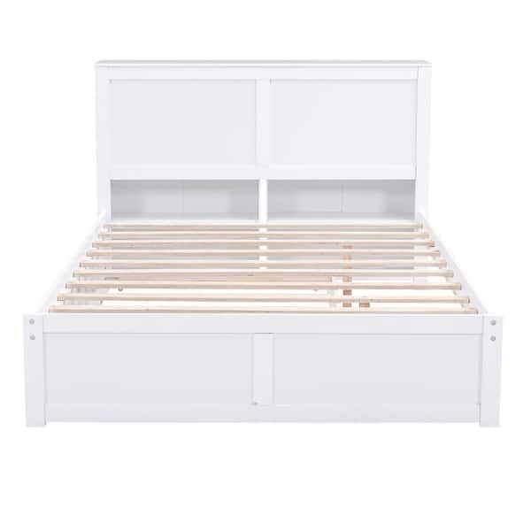 White Wood Frame Full Size Platform Bed with Pull Out Shelves and Twin Size Trundle