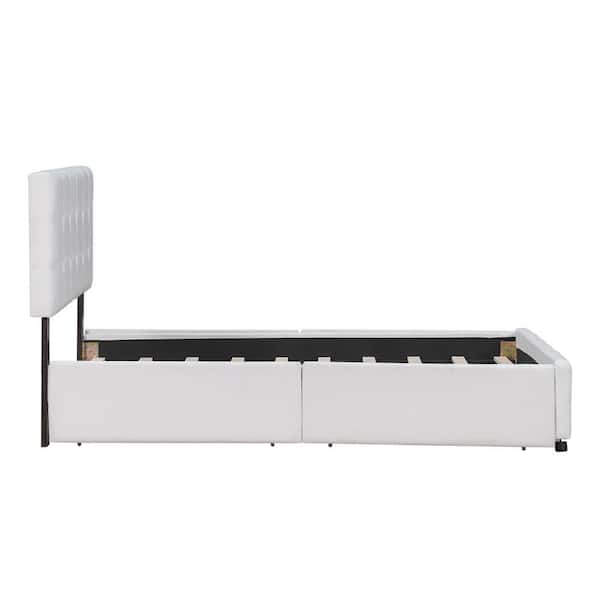 White Wood Frame Queen Size Linen Upholstered Platform Bed with 4 Drawers