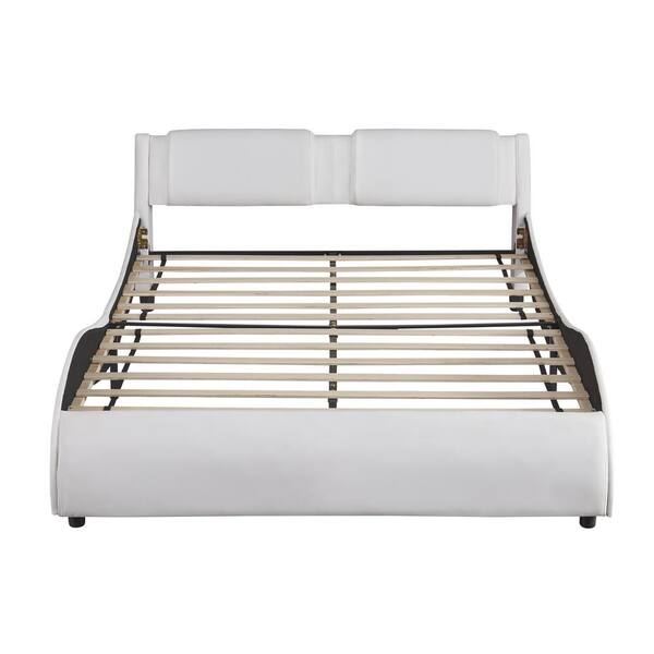 White Wood Frame Queen Size Upholstered Faux Leather Platform Bed with LED Light