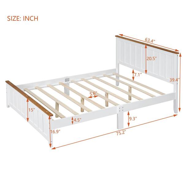 White Wood Frame Queen Size Vintage Platform Bed with Rectangular Headboard and Footboard