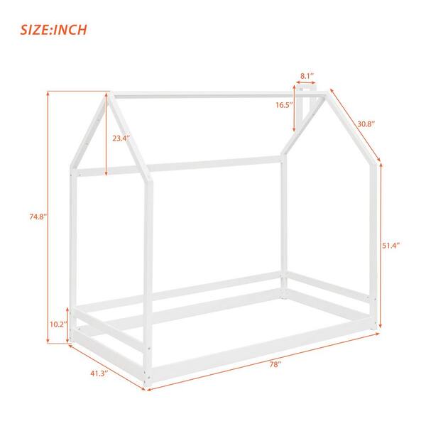 White Wood Frame Twin Size House Platform Bed with Roof and Chimney