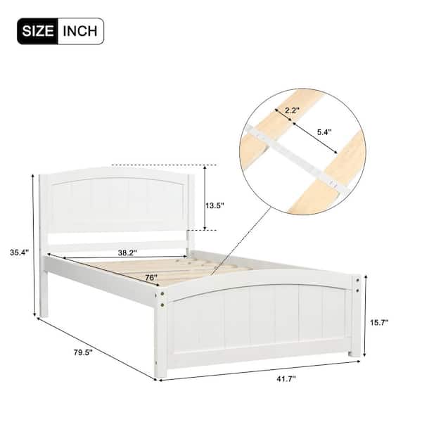 White Wood Frame Twin Size Platform Bed with Curve-lined Headboard and Footboard