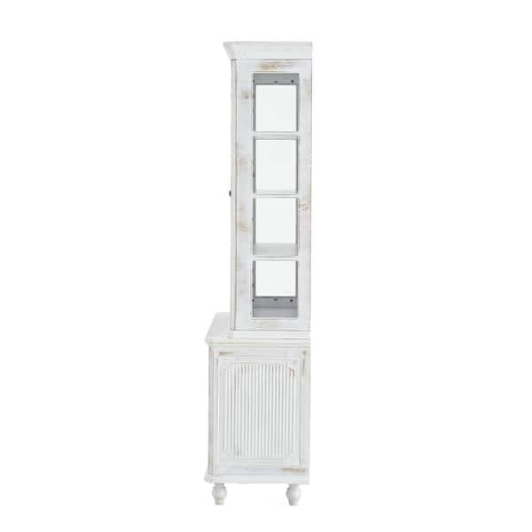 Whitewashed 77.5 in. H Storage Display Cabinet with 4 Adjustable Shelves, Glass Doors for Hallways, Living Room Kitchen