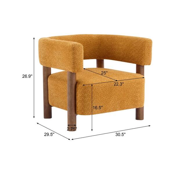 Yellow Boucle Upholstered Arm Chair with Solid Rubber Wood Frame