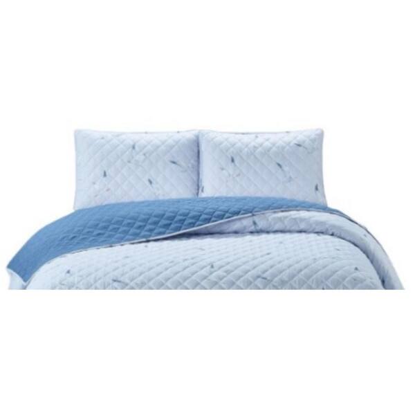 3-Piece Lt. Blue Seagulls Coastal Reversible Microfiber Full/Queen Quilt Set