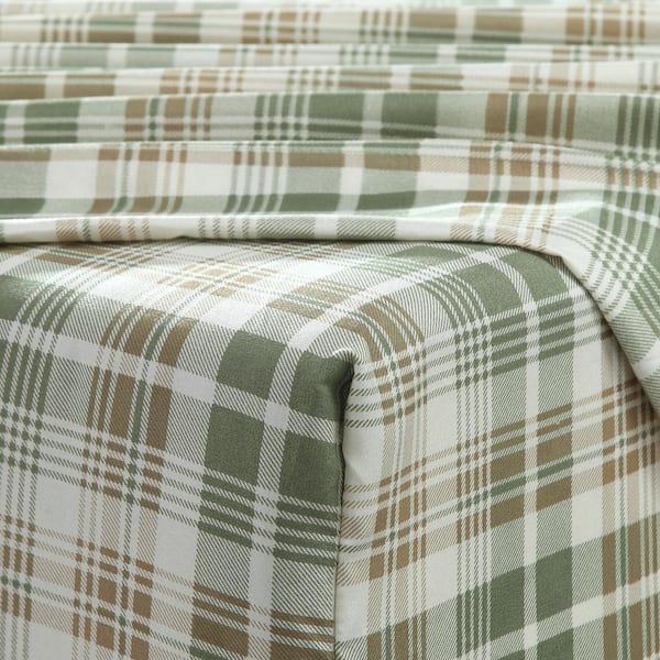 Cabin Plaid 4-Piece Green Microfiber Sheet Set Full