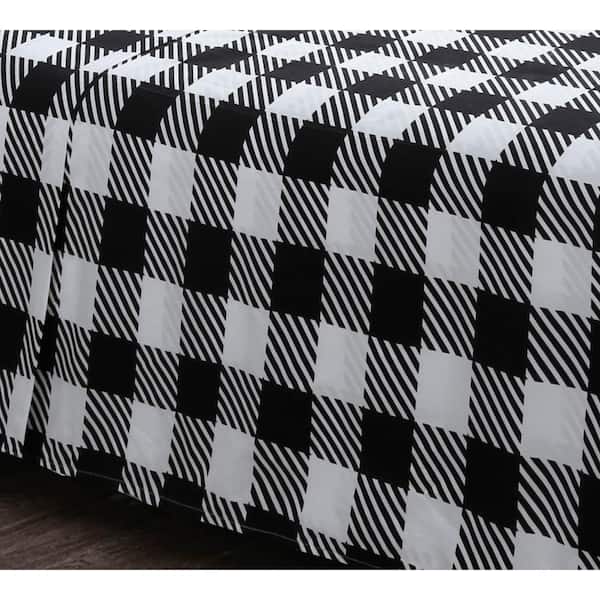 Ebony Plaid 4-piece Microfiber White Full Sheet Set