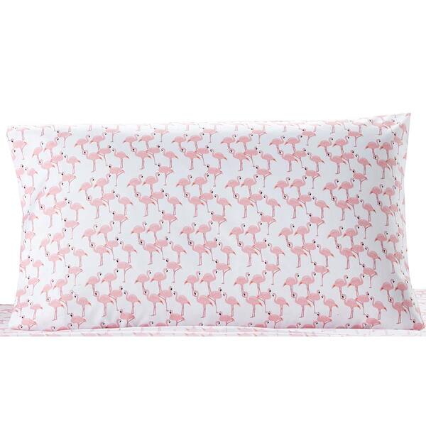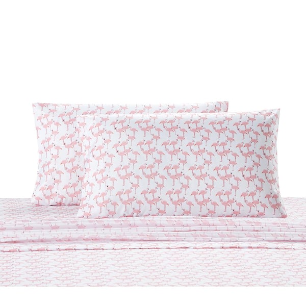 Flamingo 4-Piece White Microfiber Queen Sheet Set