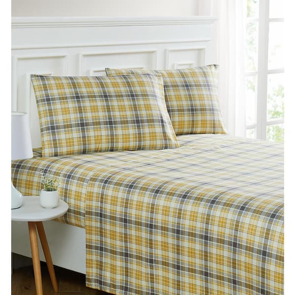 Harvest Plaid 4-Piece Yellow Microfiber Full Sheet Set