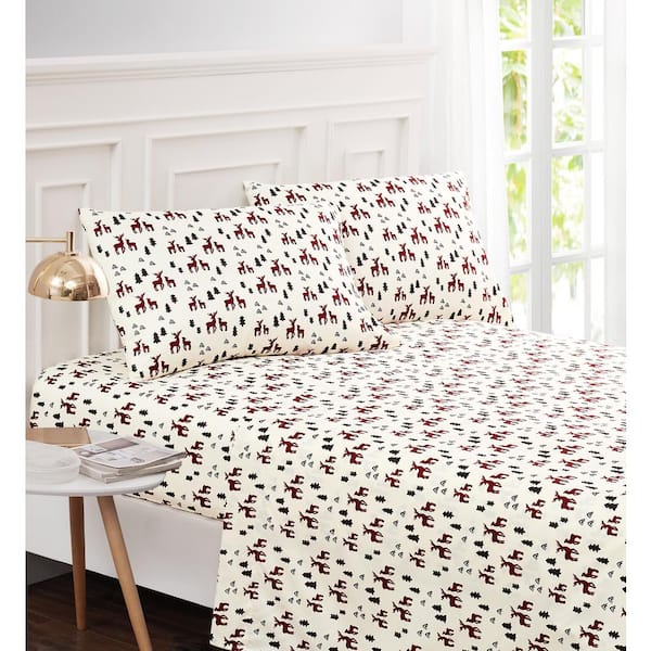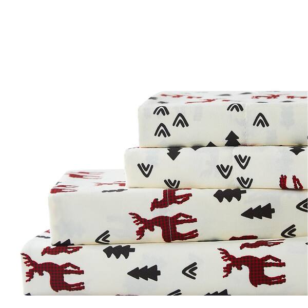 Plaid Deer White 4-piece Microfiber Queen Sheet Set