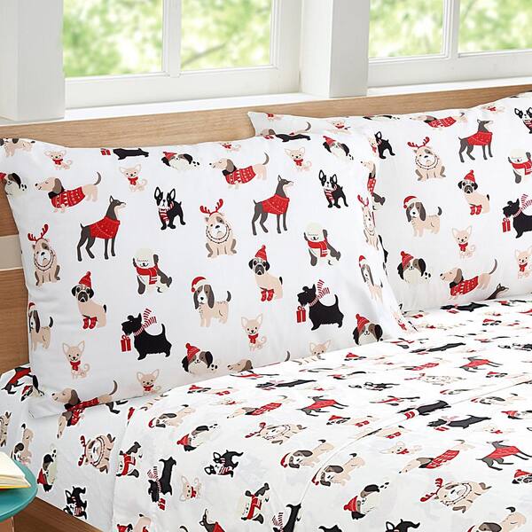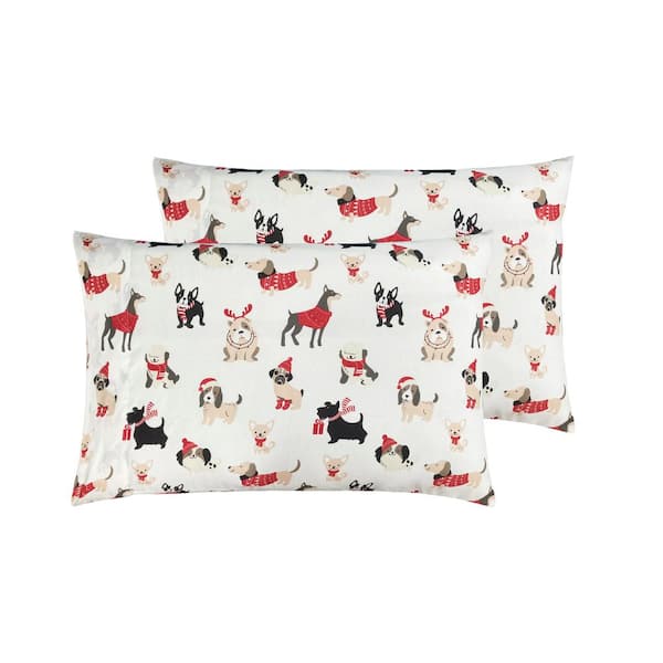 Puppies in Red 2-Piece Microfiber White Pillowcase Pair 20 in. x 30 in.
