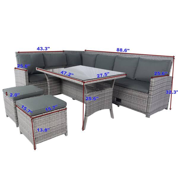 Gray 6-Piece Wicker Outdoor Sectional Set with Dark Gray Cushions and 2 Storage Under Seat