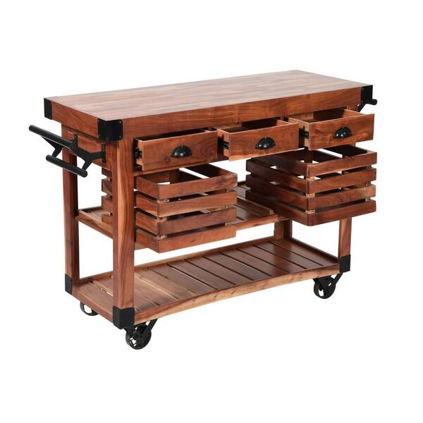 Hatch 53.50 in. W x 18 in. D x 34.50 in. H Brown 3-Drawer Serving Cart with Casters
