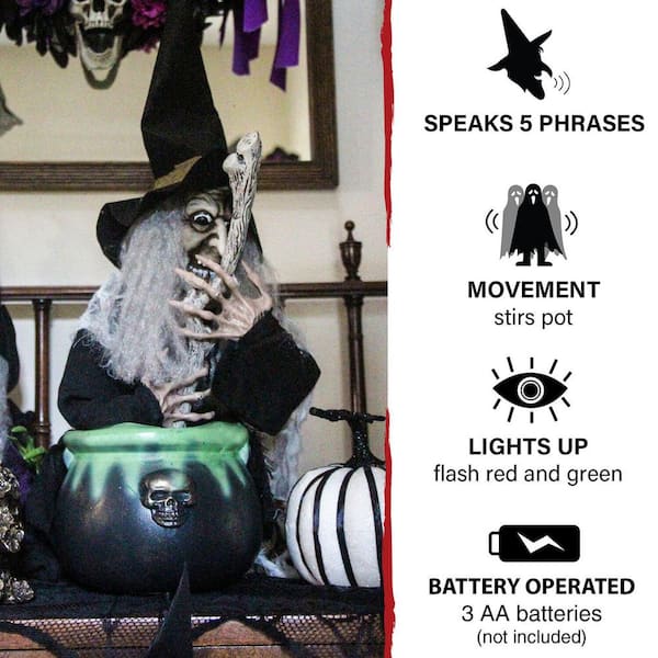 19 in. Battery Operated Animated Witch with Red and Green LED Eyes Halloween Prop