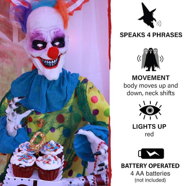 24 in. Battery Operated Animated Poseable Clown with LED Eyes Halloween Prop