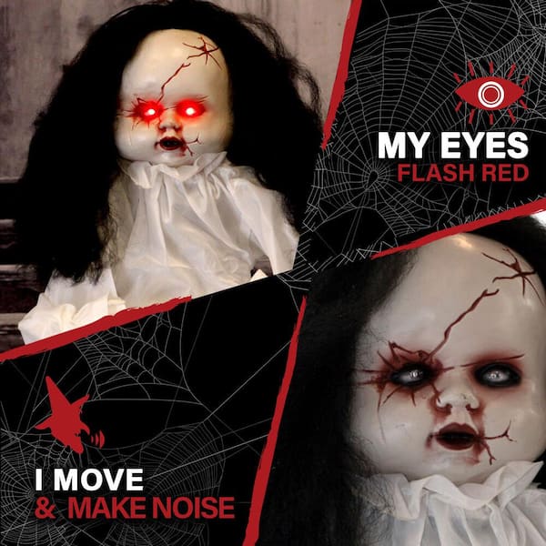24 in. Battery Operated Poseable Haunted Jumping Doll with Red LED Eyes Halloween Prop