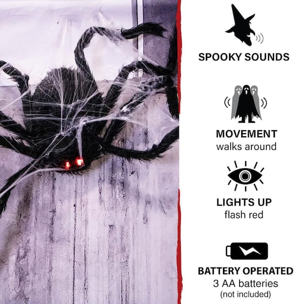 3.5 in. Battery Operated Spider with Web and Red LED Eyes Halloween Prop