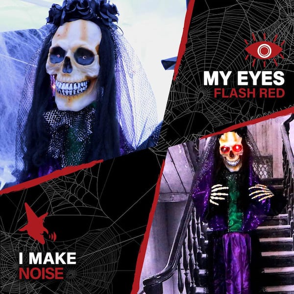 64 in. Battery Operated Animatronic Voodoo Lady with Red Eyes Halloween Prop