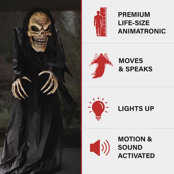 85 in. Premium Talking Halloween Animatronic Colossal The Hunched Skeleton Reaper by Tekky