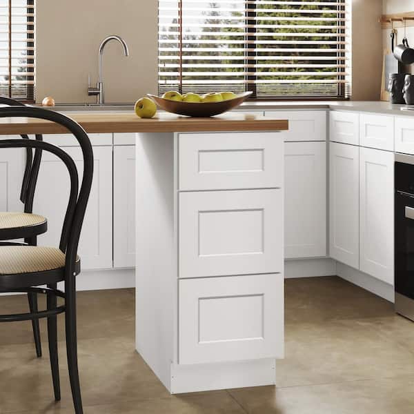 15 in. W x 24 in. D x 34.5 in. H Ready to Assemble Plywood Base Kitchen Cabinet with 3-Drawers in Shaker White