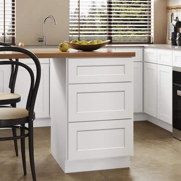 21 in. W x 24 in. D x 34.5 in. H Ready to Assemble Plywood Base Kitchen Cabinet with 3-Drawers in Shaker White