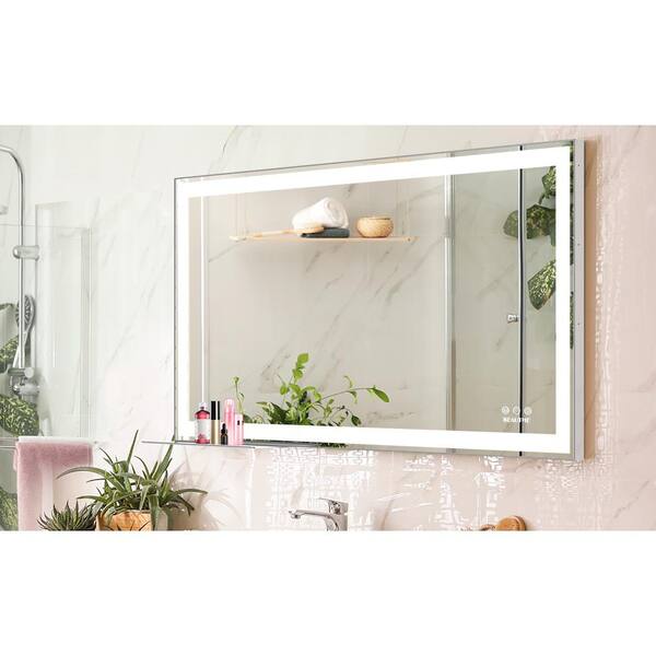 24 in. W x 48 in. H Rectangular Aluminium Frame Wall Mounted LED Bathroom Vanity Mirror in Silver