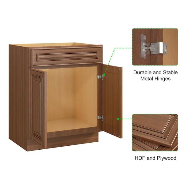 27 in. W x 21 in. D x 34.5 in. H in Cameo Scotch Plywood Ready to Assemble Floor Vanity Sink Base Kitchen Cabinet