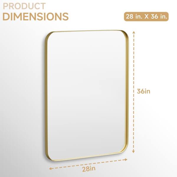 28 in. W x 36 in. H Rectangular Framed Tempered Glass Wall-Mounted Bathroom Vanity Mirror in Gold