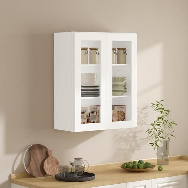 30 in. W x 12 in. D x 36 in. H in Shaker White Plywood Ready to Assemble Wall Cabinets with Shelf without Glass