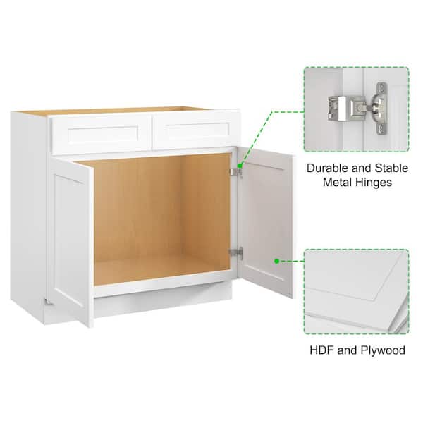 30 in. W x 21 in. D x 34.5 in. H in Shaker White Plywood Ready to Assemble Floor Vanity Sink Base Kitchen Cabinet