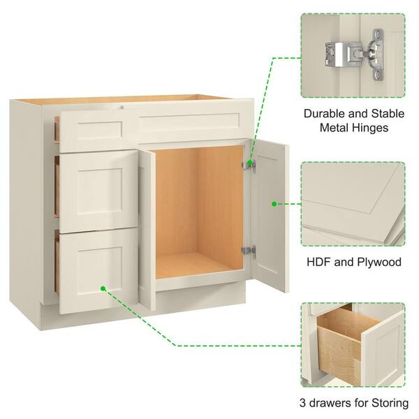 36 in. W x 21 in. D x 34.5 in. H in Shaker Antique White Plywood Ready to Assemble Vanity Sink Base Kitchen Cabinet