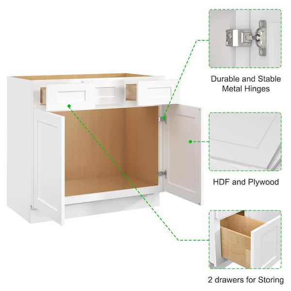 36 in. W x 21 in. D x 34.5 in. H in Shaker White Plywood Ready to Assemble Floor Vanity Sink Base Kitchen Cabinet