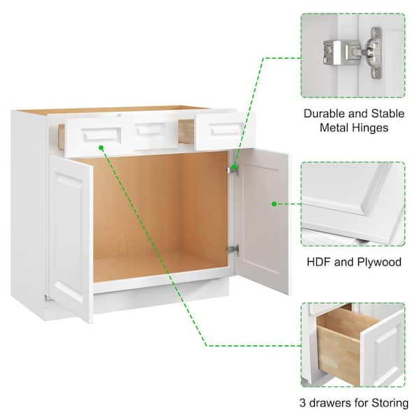 36 in. W x 21 in. D x 34.5 in. H in Traditional White Plywood Ready to Assemble Floor Vanity Sink Base Kitchen Cabinet