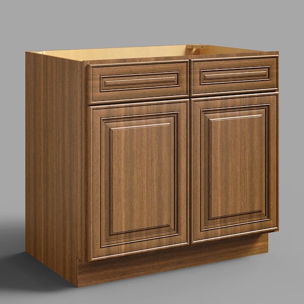 36 in. W. x 24 in. D x 34.5 in. H in Cameo Scotch Plywood Ready to Assemble Sink Base Cabinets with Shelf