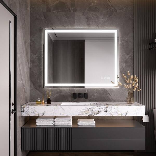 36 in. W x 28 in. H Rectangular Frameless LED Wall Bathroom Vanity Mirror, Tempered Glass