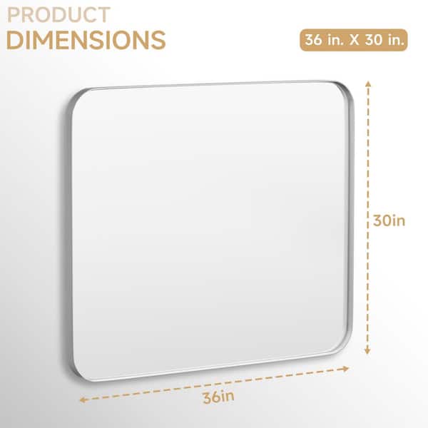 36 in. W x 30 in. H Rectangular Framed Tempered Glass Wall-Mounted Bathroom Vanity Mirror in Silver