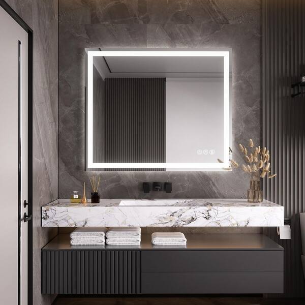 36 in. W x 30 in. H Rectangular Frameless LED Wall Bathroom Vanity Mirror, Tempered Glass
