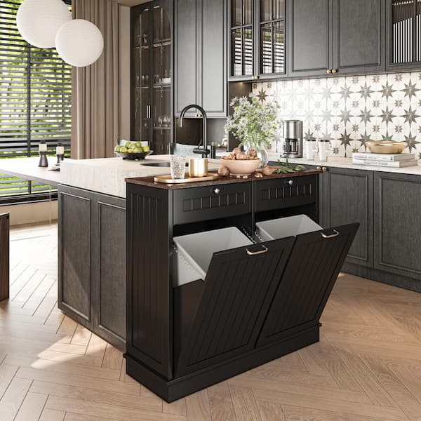 40 in. W x 14 in. D x 36 in. H Ready to Assemble Floor Base Tilt-Out Trash Kitchen Cabinet in Black with 2-Drawer