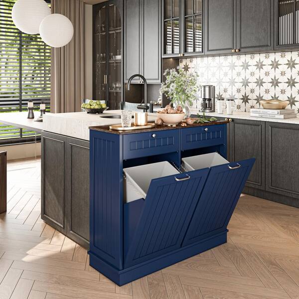 40 in. W x 14 in. D x 36 in. H Ready to Assemble Floor Base Tilt-Out Trash Kitchen Cabinet in Blue with 2-Drawer