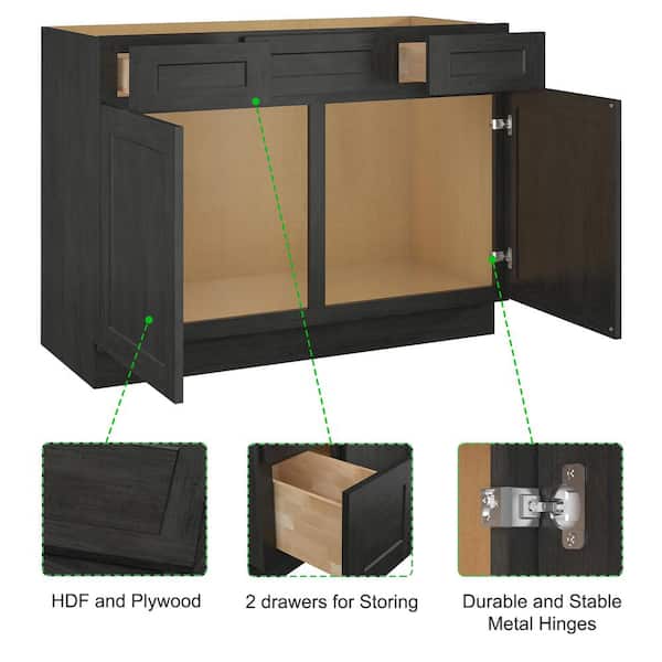 48 in. W x 21 in. D x 34.5 in. H in Shaker Charcoal Plywood Ready to Assemble Floor Vanity Sink Base Kitchen Cabinet