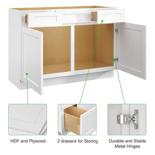 48 in. W x 21 in. D x 34.5 in. H in Shaker White Plywood Ready to Assemble Floor Vanity Sink Base Kitchen Cabinet