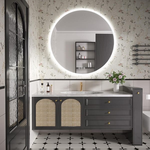 48 in. W x 48 in. H Round Frameless LED Wall Bathroom Vanity Mirror, Tempered Glass