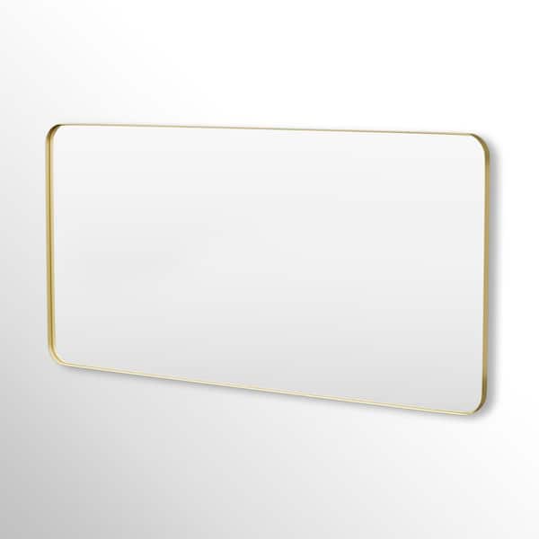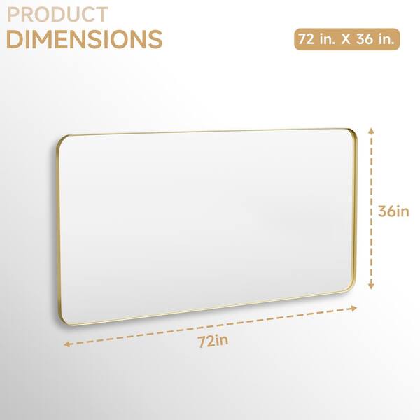 72 in. W x 36 in. H Rectangular Framed Tempered Glass Wall-Mounted Bathroom Vanity Mirror in Gold